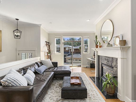 Light, bright, and luxurious townhouse style condominium with a Mt. Hood View. High ceilings showcase an open floor plan with hardwood floors, gas fireplace, deck, and kitchen with cherrywood cabinetry and granite countertops. Upstairs you will find a primary suite that boasts a view of Mt. Hood with an additional fireplace, walk-in closet, and spa-like bathroom. The second bedroom features an ensuite bathroom. Attached 2 car garage is extra deep and provides a bay in the driveway for a third vehicle. Updates include new carpet, LED light fixtures, and an Inline tankless water heater. Superb location that is quiet, yet with easy access to NW 23rd, Arboretum, Raleigh Hills, the Oregon Zoo, and many of our areas largest employers. [Home Energy Score = 7. HES Report at https://rpt.greenbuildingregistry.com/hes/OR10166177]
