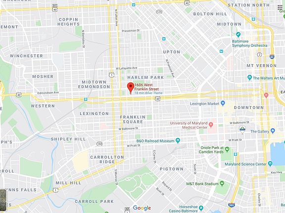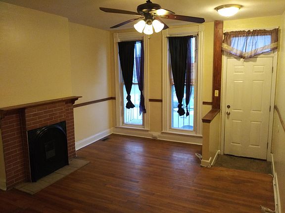 This end-unit town home is located directly on a main M.T.A. bus route (CityLink Orange) and has been recently remodeled. From the front porch you have a clear view of the entire outline of Baltimore City. It is convenient 5 minute drive to the downtown Baltimore Inner Harbor with quick access to Rte 40 east or west. Central Heat! Washer & Dryer! 1st Floor - There is a living room with a fireplace upon entering the home with a dining room and half bathroom in the center of the floor plan and a kitchen in the rear. The kitchen has Mahogany Cabinets, Stone Look Counter-Tops, Single Stainless Steel Sink and a stainless steel gas stove with over range exhaust (white) and a Refrigerator (white). Off the kitchen you go out to a concrete, fenced yard area, great for children to play with added bonus of low maintenance!! 2nd Floor - There are 3 bedrooms and a full bathroom on this level. Hardwood flooring throughout hallway and all bedrooms. The full bath has 4" x 4" white ceramic tiles 4 ft. up and around the walls and tub surround. with a white tub, oak vanity with oak medicine cabinet to match and energy efficient toilet. All Fixtures Chrome. Basement - This level is not finished but all walls and flooring is completely seal and looks great where the wash and dryer are located.