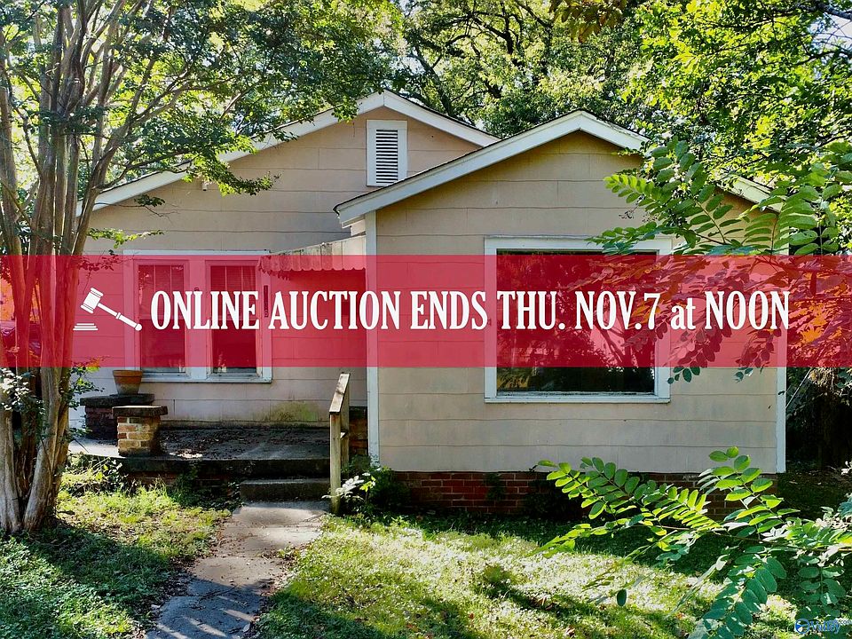 ONLINE AUCTION ENDS THU. NOV. 7 at NOON ~ Awesome Five Points location! This bungalow/craftsman style house is in the highly-acclaimed Blossomwood Elementary / Huntsville Middle / Huntsville High school zones. With its alley access, vibrant downtown Huntsville is just moments away making for a short short drive to restaurants, shopping and major highways. Just add your touches to turn it into a great rental or personal residence. Check it out and then bid to win at online auction! Open house Sunday, Nov. 3 from 2pm to 4pm.
