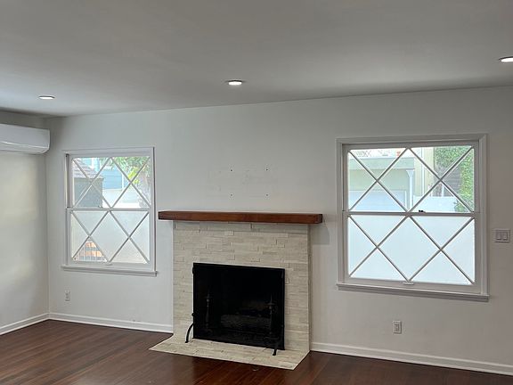 Prime Silver Lake area. Open and airy 2 bedroom,1bath apartment located on the street level in a small complex. Hardwood floors throughout, gas fireplace in the living room. Remodeled kitchen with eat in area in the kitchen. Stainless steel appliances. Washer and dryer in the unit. Split heating and air conditioning units in each room. New bathroom with subway tiles, double sinks and black hardware.