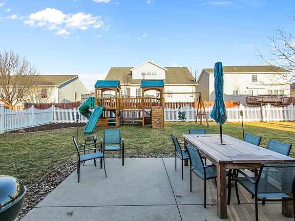 Popular Armstrong Builders 5 bedroom/3.5 bath open floor plan with a finished basement, 3 car garage & large fenced backyard. This home features maplewood cabinets, eat in kitchen with breakfast bar open to an oversize family room. Second fireplace in lower family room. Convenient second floor utility room for washer/dryer. Spacious master. Large white scalloped vinyl fenced yard. Home has been recently painted and ready to move in.