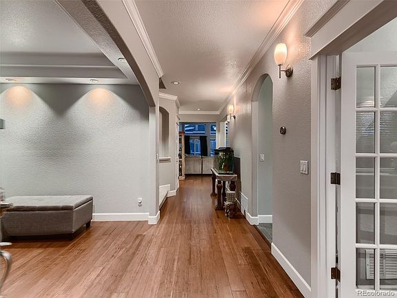 Price improvement! Lovely 6 bedroom, 4 bath single family home in stunning Fronterra Village. Wood floors and vaulted ceilings greet you as you make your way through the spacious main level. Modern kitchen featuring slab countertops, stainless steel appliances, a decorative tile backsplash and large tile floor. Relax by the living room fireplace, have a family meal in the formal dining area or entertain guests in the large finished basement family room and movie area with a wet bar and surround sound. Escape to your main floor master suite with vaulted ceilings, bonus office space, plantation shutters, walk-in closet, french doors and a private 5-piece bathroom with a spa-like tub. Fenced yard, mature trees, and an attached 2-car garage. Fronterra Village is ideally located within minutes of neighborhood 27j schools, parks, Reunion rec center, shopping, dining and a massive trail system.