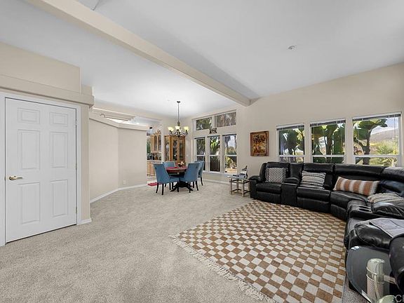 Welcome to Your Private Oasis. Enter through a private gated entrance and follow the long concrete driveway, gracefully lined with swaying palm trees. As you ascend, a breathtaking view unfolds—a pristine, flat, usable 10-acre expanse, ready to fulfill your dreams. Whether you envision equestrian facilities, gardens, or additional structures, this versatile land offers endless possibilities. At the heart of this estate stands a spacious 5-bedroom, 3.5-bath home designed with comfort, functionality, and elegance in mind. Boasting multiple living areas, an open floorplan, and soaring ceilings with skylights, this home is bathed in natural light, creating a warm and inviting atmosphere. The large master suite is a true retreat, complete with a private sitting area, high ceilings, and a luxurious ensuite bathroom. Each of the spacious bedrooms ensures ample room for rest and relaxation. For those who work from home or require a private workspace, an office with a separate entrance provides convenience and flexibility. The home is equipped with a well, septic system, and propane, ensuring self-sufficiency and reliability. Step outside to find your own private paradise—an inviting pool with a tranquil waterfall and a relaxing jacuzzi, offering the perfect place to unwind. Beyond the home, the property continues to impress. A detached 3-car garage and multiple out-buildings provide ample storage, while a dedicated gun range caters to outdoor enthusiasts. Hidden gems await as you explore, from a peaceful cave with a cozy sitting area to serene seating spots along a seasonal stream. An elevated viewpoint offers breathtaking panoramic views of the surrounding valley, making it the perfect spot to soak in nature’s beauty. This is more than just a home—it’s a sanctuary, blending luxury, tranquility, and endless possibilities. Don’t miss your chance to own this extraordinary estate!