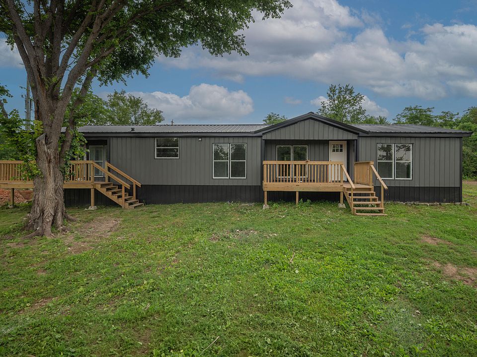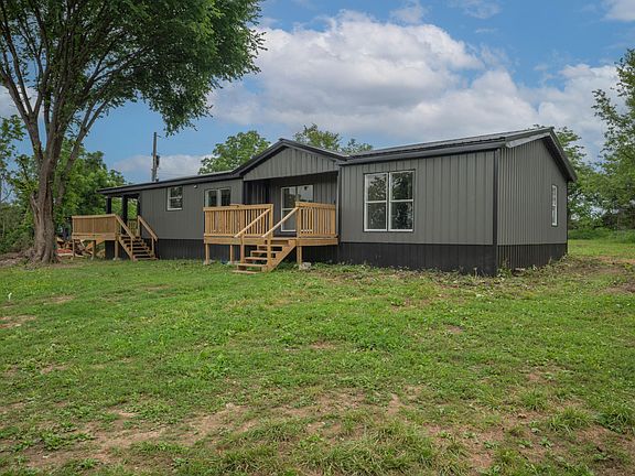 Tucked away on 2.3 peaceful acres just above Cassville High School, this beautifully remodeled 3-bedroom, 2-bath manufactured home offers the perfect blend of privacy and convenience. With no nearby neighbors and just minutes from town, you'll enjoy the best of both worlds. The home features a modern dark gray exterior with two large decks, one in front and one on the side, ideal for relaxing and taking in the quiet surroundings or hosting guests. Step inside to find a bright, open layout with a split-bedroom floor plan, fresh neutral finishes, and large windows throughout that fill the home with natural light. The kitchen is a dream with tons of cabinet storage, generous counter space, and a layout designed for everyday living or entertaining. The spacious primary suite is a true retreat with a large soaking tub, walk-in shower, and plenty of room to unwind. This home is mostly electric and includes two efficient mini-split systems for heating and cooling, as well as a cozy propane fireplace in the living area. A brand new septic system has just been installed, adding even more peace of mind. Stylish, updated, and move-in ready, this one checks all the boxes.