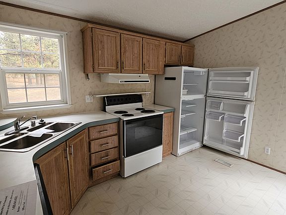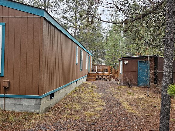 Neat as a pin manufactured home on a nicely treed 1.34 acres is ready for it's next owner. This property is fenced on 3 sides and has a front gate. Large 16X8 rear wood deck that includes safety railing and a bench. Two storage sheds, both with electricity, plus small covered parking area in front. Please note only one full bath in the home the other full bath is in one of the rear outbuildings and has separate water heater.