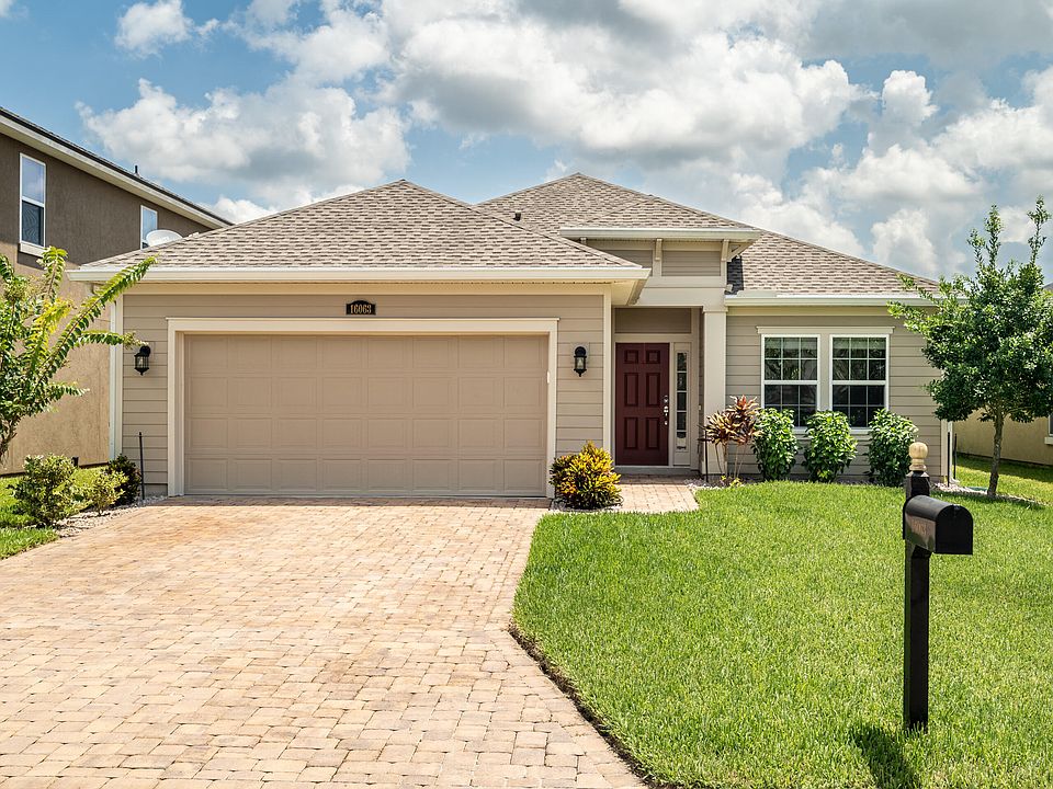 This home is three years new, with beautiful updates and easy to maintain finishes. Stainless steel appliances, three large bedrooms with walk in closet. Use the room in the front as a bonus room, an office or a dining room - a true flex space. Enjoy the outdoors on the screened in pavered lanai. This neighborhood boasts resort like amenities like the pools, tennis courts, basketball courts, playgrounds and workout facilities.