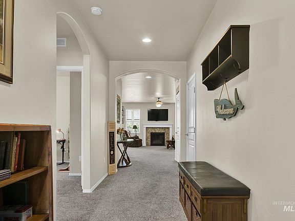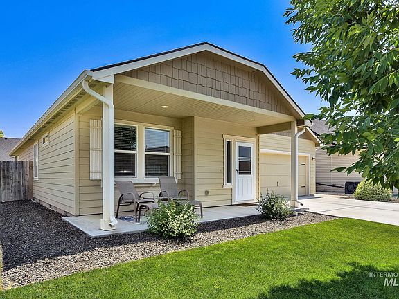 Beautiful inside & out -7 years New! Split bedroom design with large rooms & open living area to kitchen & dining. 9' ceilings thru out & 36" wide doors. Deep entry with access to the front bedrooms & full bath. Kitchen features quartz counter, subway tile backsplash, painted white cabinetry, plentiful counter areas, breakfast bar open to informal dining. Stainless appliances include a gas stove, microwave, & dishwasher. Neutral colors thru-out home featuring white accent baseboards & doorways. Spacious living area with gas Fireplace & natural light from transom & oversized windows. Large Primary Suite includes a walk in closet, double sinks, taller vanity, raised toilet & double sided walk in shower with glass door. Enclosed laundry room with hanging rack and shelving. 2" blinds thru-out, skip trowel texture, extra storage. Remarkable Landscaping with separate watered garden area, covered bk patio, peach tree & boysenberry plants - new 8X10 shed. Hardi-plank low maintenance siding - immaculate. Call to show!