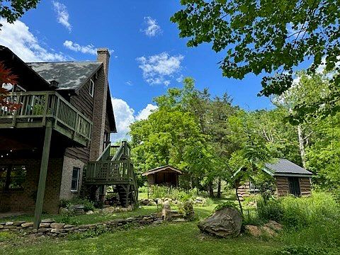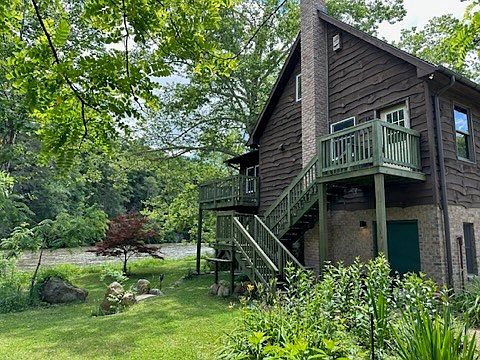 Price reduced!! Convenient river oasis on the banks of the North Fork of the Holston River. This one of a kind 2 BR, 3 BA riverfront home is located off Highway 19, approximately 10 minutes to Abingdon and the Virginia Creeper Trail. Approximately 300 feet of stunning riverfront, with additional frontage along Little Moccasin Creek. The 1,400+ square foot nature inspired home features reclaimed heart pine flooring, oak trim crown molding and baseboard, and is only steps from the tranquil waters and boasts river views from every room! The 600 square foot garage offers storage and/or workshop area. An additional studio/building has lovely brick flooring, master woodwork, and floor to ceiling doors. Your stress will melt as you relax on the deck or patio and enjoy swimming, fishing, and kayaking among the local wildlife, native trees, plants, and gardens. This is truly a magical place.