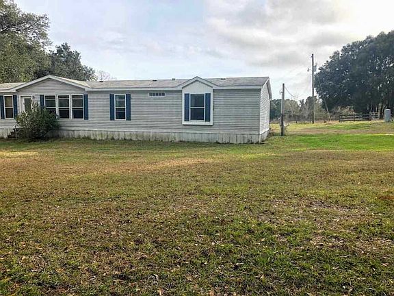 Gorgeous, flat, large acreage, pasture land with large double wide mobile home. Property is fenced in the rear for animals. Nice large oaks on the acreage. Well and septic are in place, but conditions are unknown. Mobile home has very nice floorplan, large island in the kitchen, interior laundry room, large bedrooms and lots of room to live. Home will require rehab and renovations. Being sold as is.