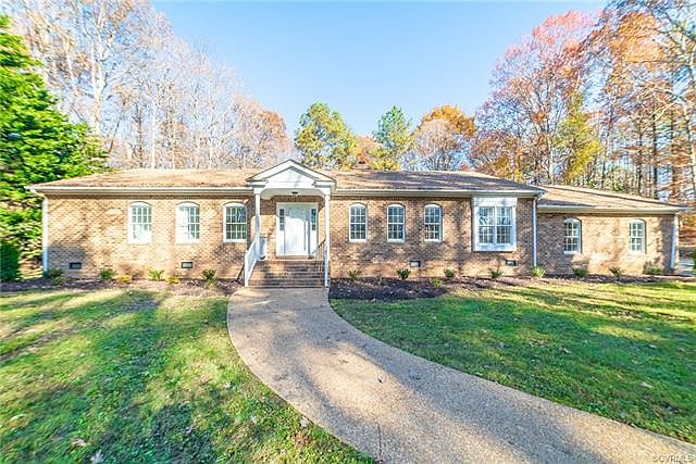 FIRST FLOOR LIVING 12 MINUTES FROM SHORT PUMP. Private setting on 2.6 acres. Great room with hardwood floors, vaulted ceiling, built-in bookcases, and wood stove. Large eat-in kitchen with gas stove, white cabinets, granite countertops, stainless steel appliances, and tile backsplash. Dining area off of kitchen with vaulted ceiling and lots of natural light. Master bedroom with attached full bathroom and walk-in closet. Two additional, generous sized bedrooms/office with walk-in closets. Laundry room with utility sink, built-in storage and folding table, and direct access to backyard. Other highlights include attached oversized, 2-car garage with storage area, private deck on the back of the house, ALL BRICK, new roof, and beautiful mature hardwoods. Convenient to restaurants, shopping, and interstates. RV hookup.