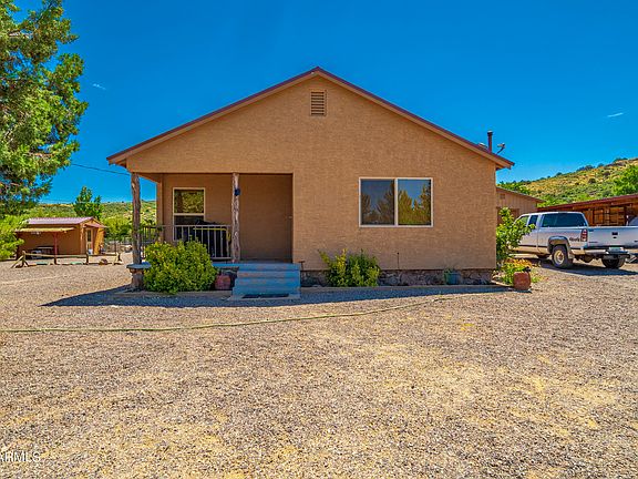This home has been remodeled (2019) and is like new on the inside. Freshly painted with new wood flooring inside. Dual pane UV protected windows encased with wood trim. Appliances are just 4 years old, this sale includes the refrigerator, washer & dryer. The home features new insulation, split unit air conditioning/heater and an evaporative cooler. There's also a pellet stove for efficient heating in the winter. The property features a one car extended garage/shop area and several outbuildings. Come on up the hill and check out your new investment property, rental, Airbnb, or vacation home!