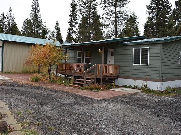 Charming 3 bedroom/2 bathroom updated manufactured home on 1.02 acre wooded lot near the La Pine State Park. Large water feature that provides an oasis for wildlife. 28' x 48' shop with 12'doors, loft, storage room & 11' by 27' room that could be a man cave, exercise room, or art studio. Covered front porch & large deck in back for entertaining. Freshly painted inside and out. Solid surface kitchen countertops and new cabinets. Laminate flooring. Daikin Ductless Heating/Cooling system. Fresh gravel on the circular driveway. Close to Cascade Lakes, trails, and more! Roads are maintained and snowplowed with road assessment included in yearly property taxes. Beautiful Ponderosa Pines, Aspen, and wildflowers in the fully fenced yard. Owner is real estate licensee.