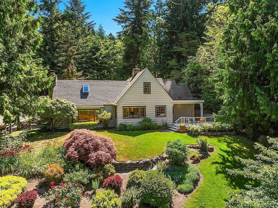 Nestled on ¾ ac is the most romantic color-kissed idyllic setting in desired Three Tree Point! 1940s French Normandy cottage framing Sound & Sunset views! Original details mingle w/2003 renovation. Edible gardens, double french doors to pea gravel patio, deck, side yard hugging cedars. Lux kitchen w/Miele, paperstone counters, pantry. Owner Suite on main/2 beds + office/playrm upstairs w/laundry shoot. 3 min to Three Tree Store & Beach (fish/swim/SUP/kayak/diving). Indian Trail across Street! 1.5mi to Olde Town artisan shops/sips/eats: Osteria da Primo, Grand Central, Centro, 909, Elliott Bay, Bakery Nouveau, Dolce Diletto, Huckleberry Sq. PCC, Trader Joes & Farmers markets. Quick to Seahurst Pk & Hospital; 30 min to Seattle/Bellevue & Alki