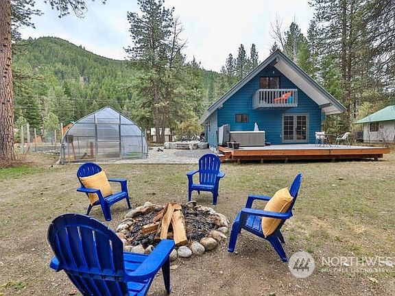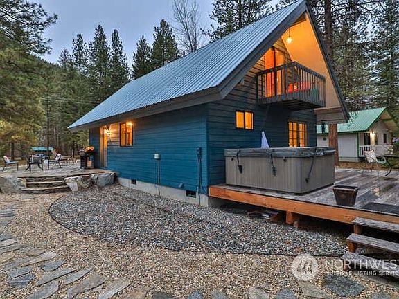Welcome to this 1,200 sq ft Chalet on .56 acres on River Road offering 2 bedrooms & 1 & 1/2 baths, a perfect sanctuary to enjoy the outdoors. Step inside to a sunlit living space w/river rock fireplace. Open concept w/updated kitchen, dining & vaulted ceilings, new oak floors & tiled entry. Unique flagstone terrace adds 800 sq ft of outdoor living. 16’x24’ Ipe deck for entertaining & hot tub to relax. The Community has 2 separate access areas to the river. 14' x 20' greenhouse w/attached garden to extend growing season.12’x16’ storage shed for recreational needs. A short drive to Leavenworth & Stevens Pass.
