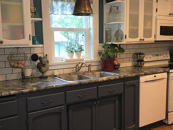 Darling remodeled and affordable move in mint ready! 2 large bedrooms, one with walk in closet, upper level full bath, main level 1/2 bath, darling custom lighting, custom kitchen cabinetry, new counter top, all new flooring except original hardwood on main level, darling front and back porch, stain glass front window, all kitchen appliances stay, custom built in shelving, large corner lot beautifully landscaped with perennial gardens, maintenance free fenced backyard, 10 x 12 deck for entertaining, 2 stall garage with opener and concrete driveway. This home is truly adorable and in mint condition, updated insulation, freshly painted basement with desk nook, forced air, central air, CB updated, roof 2008, garage roof 2016.