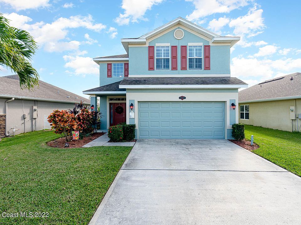 LAKEFRONT ALERT! Beautiful 4-bedroom, 2.5-bathroom house is an entertainer's dream in the prestigious West Melbourne Landings. The wood-look laminate sprawls throughout the downstairs living area, perfectly accented by specialty lighting and remote-controlled ceiling fans throughout the house, providing a luxurious look and convenience. Recent upgrades feature a unique granite pattern wrapping the huge kitchen, two-tone cabinetry, pull-out lower cabinets, and a giant pantry. The upstairs has more entertaining space with an open family room, three spare bedrooms, and a remodeled bathroom featuring granite countertops. The master bedroom has a direct water view and a gigantic walk-in closet. A spacious and upgraded master bathroom offers granite countertops and a linen closet. Must see!