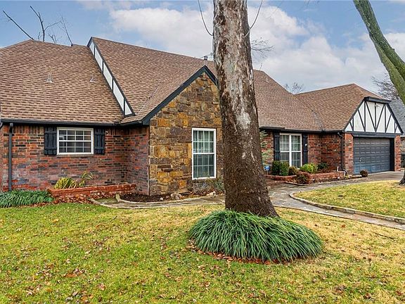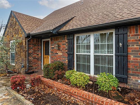 Brookhaven Old English/Tudor charmer. This spacious home offers 4 bedrooms, 2 living rooms or 1 living room and home office. Your option! Kitchen is spacious with quartz counter tops, a window over sink looking onto back yard, double ovens, smooth-top stove, homwork station, china hutch, breakfast bar and dining nook with large windows bringing the outside in. Large living room, cozy fireplace, door onto patio and back yard. Second living or home office just off the foyer. Primary bedroom is large and has double vanities, step in shower, large walk-in closet. Secondary bedrooms are upstairs and share a hall bathroom. Large laundry room, lots of storage throughout home and attic storage. Gorgeous back yard with Wintertime green grass, a large storage building with electricity. Mature shade trees in front and back yard. Extra space driveway. This home is close proximity to neighborhood parks, Norman Healthplex, dining, shopping, entertainment. This neighborhood has that community feel.