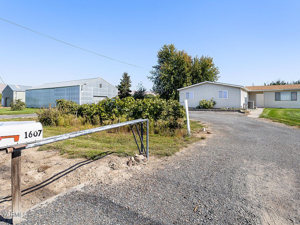 Immaculate one owner home. Manufactured home with additional room with sink and hot tub. Perfect for plants, storage and entertaining. Primary bedroom on one end of home and two bedrooms on the other. Spacious living room and kitchen with eating area. Two large shops for all of your projects and toys. Separate covered storage for lawn tractor and yard items. Deck on front of home and view of Yakima. Large yard with irrigation water.