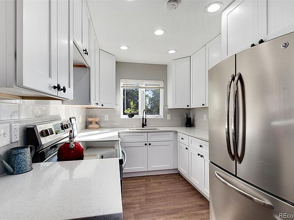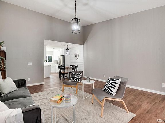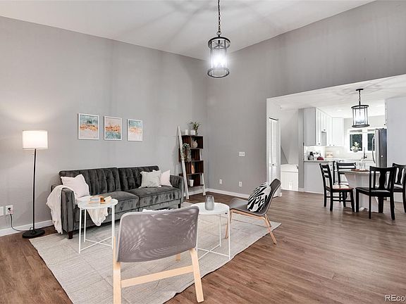 Turn key townhome just blocks from Sloan's Lake! This townhome was renovated in 2021 and is ready to go! Unique bi level layout has a main floor open floorplan with vinyl plank flooring. Spacious living room with soaring vaulted ceilings plus access to your private yard. The on trend shiplap accent wall highlights the dining area and the remodeled kitchen with stainless steel appliances, quartz counters, and updated cabinetry making preparing meals a breeze. Head downstairs to the garden level and there you'll find the primary bedroom with large closet & direct access to the renovated full bath in addition to the secondary bedroom, storage closet, and laundry with stackable ventless washer and dryer. Create your own little oasis in the private fenced yard with covered deck and a beautiful shade tree. With no HOA rental restrictions, this would make an amazing mid term rental (30 days+). One reserved parking space is included, plus guest parking, but you might not even need a car with an 83 Walk Score! Everything you need is close by. Just 2 blocks to Edgewater Marketplace, 4 blocks to the new Edgewater Public market and tons of restaurants, and just 5 blocks to the Lake with year round access to walking trails, paddleboarding, fantastic festivals and events! The surrounding area has tons of redevelopment in the works making this a great long term investment as well! Join us for our opening weekend Bubbles and Bites Brunch Open House, Saturday 10/21 from 10am-12pm.