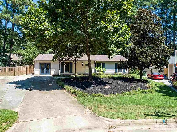 Hard to find ranch in sought after Cary location. Brick paver patio, detached storage building, FRESH paint throughout home, NEW Lvp flooring in master bedroom, en suite, flex space, and laundry room. Guest bath with updated vanity. Kitchen features granite countertops, stainless steel appliances, pendant lighting, and is open to family room. Flex space would make great home office, home is already wired for Google Fiber.