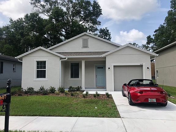 2020 built single family 1,266 square foot home located in Seminole Heights, Tampa, Florida. 3/2 split floor plan with open concept family room and kitchen. There is a lot of natural light from the windows and doors in the home to make it nice and bright. There is an attached single car garage, nice back yard, and is located in a school zone. Security system wired and available for activation, ring video front doorbell, electronic front door lock with programable code, and secured sliding glass doors in rear. There is a programable thermostat for the energy efficient home. All appliances are included (refrigerator, dishwasher, oven,/range, microwave, washer and dryer). Very efficient home with low utility bills. Pets are welcome with a pet deposit. Frontier and Spectrum are offered in the area.