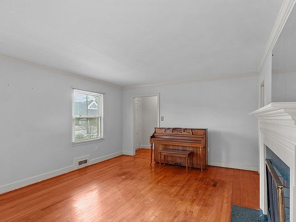 Charming Ranch Home with Timeless Character! Welcome to this adorable 3-bedroom, 2-bath bungalow on a .32-acre homesite in Goldsboro. With 1,800 sq. ft. of inviting living space, this home is filled with warmth and classic details. Step inside to find original hardwood floors flowing throughout the family room, bedrooms, and hallway, along with classic 6-panel interior doors. The spacious eat-in kitchen features crown molding, white cabinetry, an under-cabinet light, accent countertops, and white appliances, including a smooth-top range/oven, dishwasher, and refrigerator. The primary bedroom offers three single windows, a ceiling fan with light, and hardwood floors, and it adjoins a full bath with tile floors and a beautifully tiled walk-in shower. The family room is warm and inviting, featuring a gas log fireplace with a custom mantel and dentil trim molding, crown molding, and a natural flow into the dining room, highlighted by a 5-bulb chandelier. A full hall bath includes tile floors and a tile-surround tub/shower combo for added charm. If you appreciate classic details and a welcoming atmosphere, this home is one you don't want to miss—schedule your showing today!