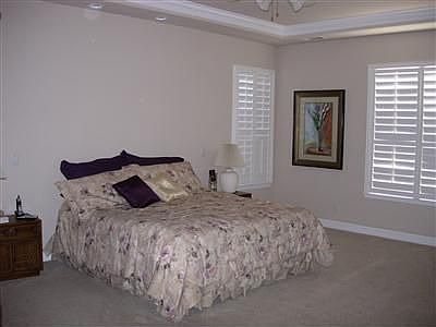 Well maintained private streets, Gary McDonald built home, located in a gated community, with approx. 3,278 sq. ft. Tile floors through the great room, kitchen and baths. The great room is a grand space with vaulted ceilings, crown molding, huge mirror over thefireplace, and a wall of windows and French doors to bring the outdoors in. Spectacular kitchen with center island breakfast bar, granite counter tops, desk, and bay windows in the casual breakfast area. The butlers pantry has a built-in hutch and leads to the lovely formal dining room. The home includes and isolated bedroom and bathroom which is the 5th bedroom in this spacious residence. The master bedroom has crown molding, single French door to the patio, jetted tub, stall shower, 2 sinks and lower vanity, plus walk-in closet. Amenities include plantation shutters, ceiling fans, 3 full baths, and a large laundry room with sink and lots of storage.