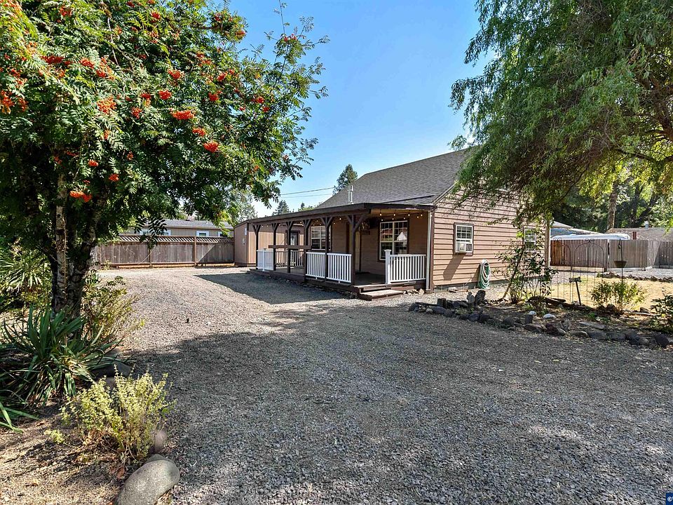Remodeled cabin in the heart of Sweet Home on a .25 acre corner lot. Tall ceilings and an open layout create room to entertain, relax, or simply enjoy the flow of the home or relax on the porch and enjoy the well-designed landscaping privacy. Newer roof, siding, windows, flooring, and paint. Large attached shop with full pull-through, gated side yard with RV hookup for parking/equipment, and extra storage make this ideal for a home-based business or projects. Make this your new Willamette Valley Basecamp!