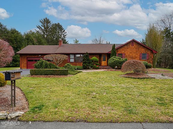 RARE OPPORTUNITY!! Wall's prestigious Manasquan River neighborhood, this sprawling ranch w/full basement features endless amenities. Gorgeous, private ''resort'' yard with inground, heated saltwater pool, audio system, magnificent landscaping, Offering lovely artistic flare, it boasts 4 bedrms, 2.5 baths, gleaming H/W flrs throughout, huge finished basement that includes a climate controlled wine cellar (stores approx 1,000 bottles), half bath, lots of storage. Upgrades include new HVAC system, hot water heater, newer Timberline roof. Living Rm w/beautiful stone wood-burning fireplace. Gorgeous Master Bedroom w/full bath, W-I closet, cathedral ceilings and opens to deck. You are a stroll away; enjoy the tranquility of the Manasquan River. This wonderful opportunity awaits