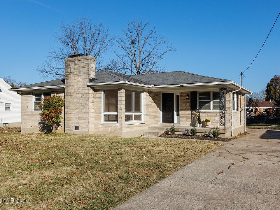 bedford stone ranch. This 3 bedroom, 2 bath home won't last long. Refinished original hard wood flooring makes this home pop. There is an eat in kitchen and large living area. Conveniently located near restaurants, shopping and more. Has a nice large lot as well with double driveway. Simply add flooring in basement to double your square footage. Full basement is ready for updating as well.