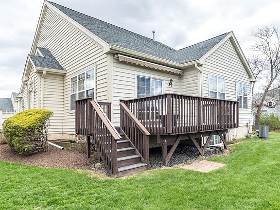 Welcome to 1607 Highgrove Court – a beautifully maintained end-unit carriage home in the highly desirable 55+ community of Lamplighter Village. Built in 2005, this 2-bedroom, 2-bath home offers 1,706 square feet of comfortable, stylish living in a peaceful cul-de-sac setting with ample guest parking for up to six cars. Inside, you’ll find solid wood floors throughout and a bright, open living and dining room combo that flows seamlessly to a private back deck complete with a retractable awning through sliding glass doors — ideal for relaxing or entertaining. The kitchen is a standout with granite countertops, a brand new stainless steel side-by-side refrigerator, and plenty of cabinetry. The spacious primary suite includes a cozy sitting area, a large walk-in closet, and a luxurious en suite bath featuring a soaking tub, walk-in shower, double vanity, and tile floors. A second bedroom, hall bath, and a laundry room with a full wall of cabinet storage provide ease and convenience. Additional highlights include a 2-car garage with an interior ramp, a full daylight basement offering great storage or future finishing potential, a radon mitigation system, and a brand new roof installed in 2024. Just a short stroll from your front door is the community clubhouse, featuring a gym, vibrant social activities, and opportunities to connect with neighbors in this very friendly and welcoming community. Don’t miss your chance to enjoy low-maintenance living in one of Warrington’s most sought-after 55+ neighborhoods — 1607 Highgrove Court is ready to welcome you home!