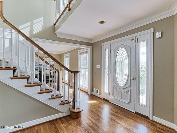 This grand 5-bedroom, 4-bath home sits on over an acre in the sought-after Buckner area and includes an attached 2-car garage plus a 24x40 pole barn. A charming wraparound porch welcomes you into a spacious 2-story foyer, and the first floor is graced with hardwood floors throughout. The bright, open eat-in kitchen stretches across the back of the home, offering fantastic views of the fully fenced backyard, plenty of cabinet and counter space, and a cozy dining area with a corner fireplace. The family room, which also features hardwood floors, has a lovely view of the wraparound porch. Upstairs, you'll find 4 bedrooms, a full bath, and a bonus room above the garage currently used as a bedroom (not included in the 5-bedroom count due to access through another room). The home is flooded with natural light from the many windows, creating an airy, welcoming atmosphere. The walkout basement features a family room with a gas fireplace, a game area, an additional bedroom, and a bonus space perfect for a library, home office or gym, plus a full bath. Step outside to a covered deck with views of a sprawling, private backyard surrounded by a full fence, along with a large pole barn offering ample space for 4 cars in tandem, an RV, or a boat. Located just minutes from the Oldham County Country Club, Aquatic Center, Dog Park, Youth Football and Soccer Fields, YMCA, I-71, and top-rated Oldham County Schools.