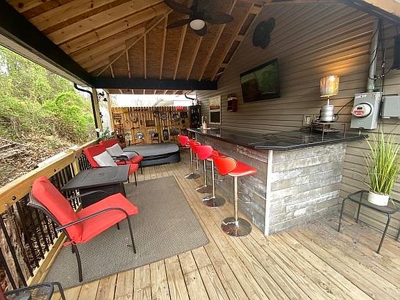 New build from foundation up, started in August 2016-Finished in 2022. Exterior soffit lighting front/back & rear patio timer activated, 4 camera video security Systyem with DVR, monitor &smart phone log in/watch with face recognition. All soft close cabinets by Forevermark, all LED lighting (most all with dimmers) bath features shower LED night light rings that toggle back and forth with flipping switch on and off. Aslo bath features LED/FAN/BLUETOOTH SPEAKER & night light with options. House is all electric including 60gal hot water tank, Goodman HVAC Heat Pump. Vinyl plank flooring, 2nd bedroom features a finished loft with LED lights, heat/air vent & carpet, exterior wet bar with stainless sink, outdoor tv hookhups, countersink hot tub, behind bar shelving & fridge plug ins (double). Furnace & see duct work is located in the attic ( with drip-pan and exterior drain), HW tank in garage, all plumbing in pex and ran under the house. House also features all New PVC drain lines with New PVC drain to the city line w/cleanout. Garage features VCT tile with baseboards, LED lights, power garage door opener with remote and hidden exterior open button, finished walls & ceiling. Hard wired with battery backup smoke detectors. Front door deadbolt with programmable code for keyless entry. HW tank, HVAC, security system, roof and hot tub are all still under warranty.