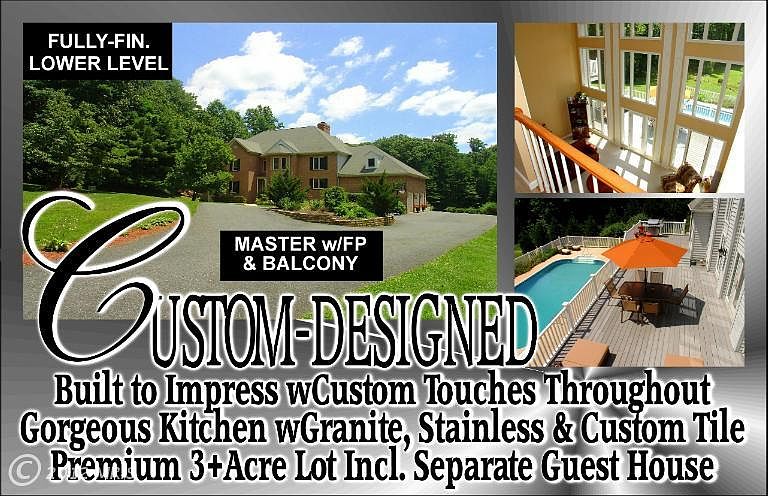 PRIVATE, PEACEFUL OASIS w/PHENOMENAL SETTING DOWN A LONG TREE-LINED DRIVE WITH CIRCULAR PAD IN FRONT OF HOME AND FEATURES AN ATTACHED 3 CAR SIDE-ENTRY GARAGE ON 3.4 ACRES BACKING TO TREES WITH POND AT BACK TREE LINE! THE OPEN FLOOR PLAN OFFERS A TWO-STORY LIVING ROOM w/WALL OF WINDOWS OVERLOOKING THE AMAZING BACKYARD, 5 BEDROOMS ON THE UPPER LEVEL, LUXURY MASTER SUITE OFFERS A GAS FIREPLACE, REMODELED OWNERS BATH w/JETTED TUB & SEPARATE SHOWER w/UPGRADED CERAMIC TILE, GENEROUSLY SIZED 2ND, 3RD & 4TH BEDROOMS, UPPER LEVEL 5TH BEDROOM CURRENTLY BEING USED FOR HOME OFFICE. 4 FIREPLACES-2 GAS & 2 WOOD BURNING, FABULOUS CUSTOM FINISHED LOWER LEVEL w/6TH BEDROOM & FULL BATH, POOL TABLE/GAME AREA-COULD BE IN-LAW/2ND FAMILY LIVING SPACE & WALK-OUT TO PATIO/IN-GROUND POOL WHICH OVERLOOKS A PICTURESQUE BACKYARD w/PLENTY OF ROOM TO ROAM, PLAY, GARDEN OR JUST RELAX! GREAT SENSE OF PRIVACY! SEPARATE DETACHED IN-LAW/GUEST HOUSE/HOME OFFICE-GREAT FOR MULTIPLE FAMILIES/HOME BUSINESS/TEENAGERS!...MAIN HOUSE IS 7,193 FINISHED SQUARE FEET w/A 4TH LEVEL WALK-UP STAIR UNFINISHED LIVING SPACE OPTION.