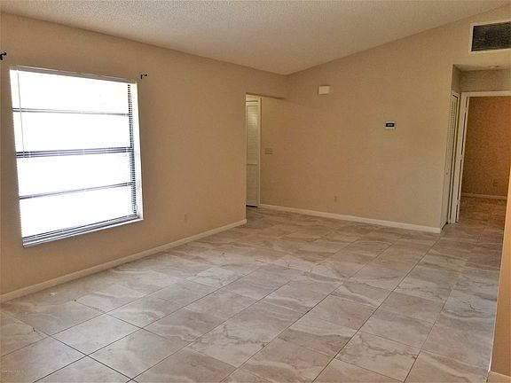 Great home on a quiet street in NW Palm Bay. Beautifully tiled throughout, no carpet. Light and bright formal living room when you walk in which flows into the formal dining area. Large family room off the Kitchen with pass through window and sliders to patio. Lots of cabinets and counter space in the kitchen with a side breakfast nook and more sliders to the patio. Spacious master suite with a large walk in closet, sliders to the patio, tub/shower combo and beautiful solid surface counters. Sizeable guest bedrooms with ceiling fans and good closet space. Generous screened patio with great view of the backyard.