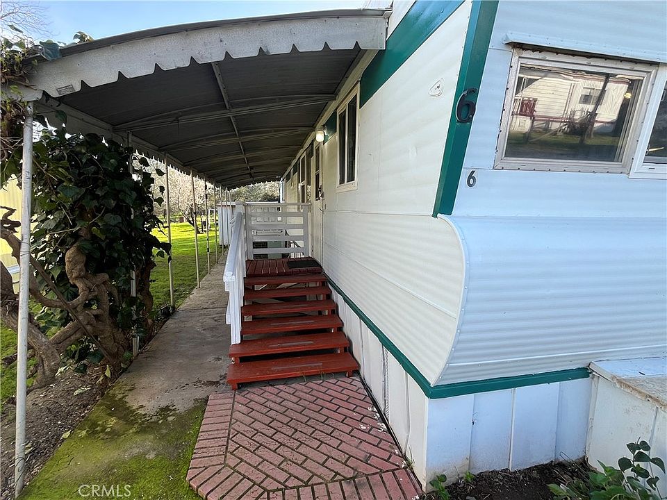 Welcome to your tranquil haven within the welcoming confines of a mobile home park community. This charming residence exudes comfort and convenience with its thoughtful features. This two-bedroom one-bath home has tile flooring throughout, accentuated by fresh interior and exterior paint, creating a bright and inviting atmosphere. Enjoy year-round comfort with a Mini Split Air & Heat system, installed new in 2022. The kitchen offers a gas oven, gas cooktop, and included refrigerator, perfect for culinary endeavors. New double paned windows in bedrooms, hallway, and two kitchen windows. Inclusive water and sewer services simplify your monthly expenses. Waste management services must be arranged locally. Window coverings provide privacy and style throughout the home. Roof durability is ensured with Henri's Elastomeric Rubberized Roof coating in Summer of 2023. Storage shed in back is also included. Enjoy access to the common yard area for leisurely activities. Rest assured with a comprehensive rental agreement and community rules provided. New mobile owners must qualify for Park Fees and Compliances prior to closing of escrow. Seize the opportunity to make this inviting mobile home your own and embrace a serene lifestyle in our community. Schedule a viewing today to experience the tranquility of Merced Mobile Home Park firsthand.