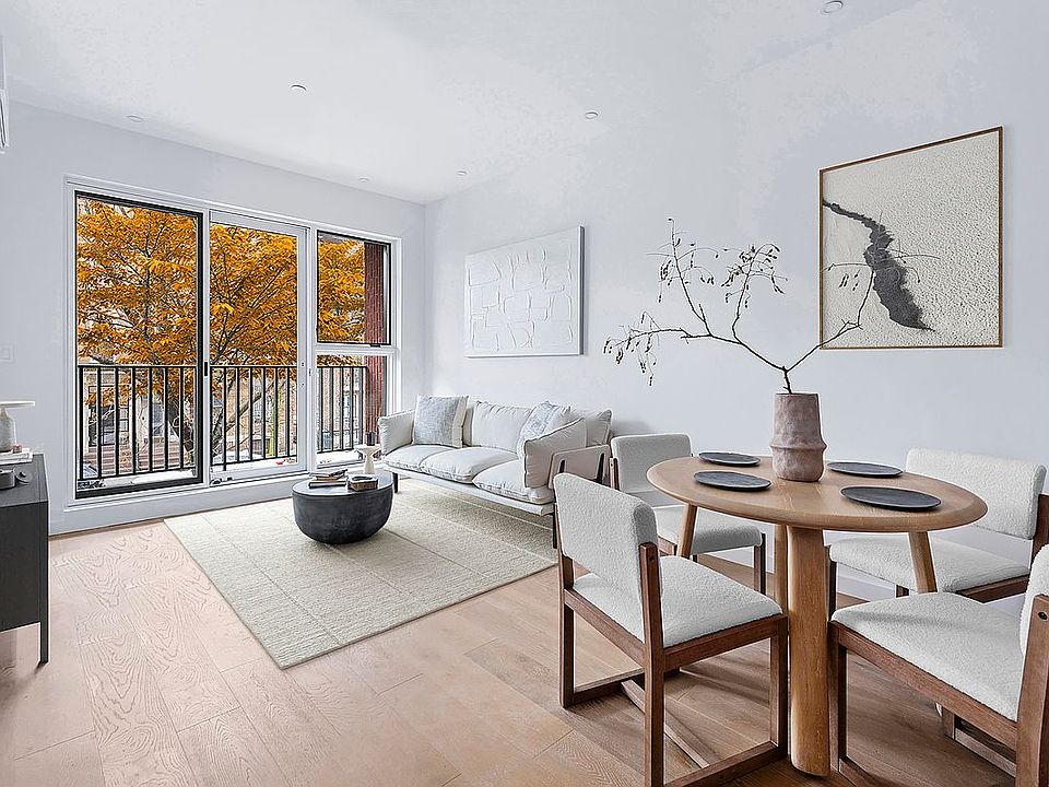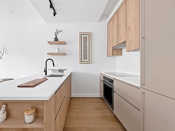 Welcome to 1607 Pacific, a stunning new development of 8 boutique condominiums in the heart of Crown Heights, Brooklyn. These stylish apartments offer studio, 1 and 2-bedroom layouts, featuring a suite of top-of-the-line appliances, wide plank hardwood floors and oversized windows that flood the rooms with natural light. The convenience and exceptional design of the building are just a few things that make it stand out in this vibrant and historic neighborhood. The modern facade blends seamlessly with the neighborhood while adding a touch of elegance and sophistication to the block. Apartment 2B is a dream come true for anyone looking for a designer oversized 1-bedroom, 1-bathroom apartment. This sun-filled unit boasts 614 sq ft of living space, with 7.5 inch white oak floors that complement and incorporate the unit’s unique style. The open kitchen is a chef’s delight, outfitted with Blomberg appliances, including dishwasher, and a range/oven with vented XO hood. The custom cabinets provide plenty of storage for all your cooking needs, and the stainless steel sink sits in a well appointed quartz island with custom built in open storage. You will also appreciate the convenience of having a laundry closet with washer/dryer hookups. The unit comes with a deeded storage space. The apartment is a haven of comfort and relaxation, with a generous bedroom that can easily accommodate a king sized bed set and holds ample closet space for your wardrobe. The bathroom features beautiful porcelain tile work, heated floors, a sleek vanity, and a deep soaking tub with rain showerhead for immersive relaxation. Mitsubishi, ductless heating and cooling units offer year round comfort and efficiency. Enjoy the fresh air and views from your private balcony, which is perfect for unwinding or entertaining. Located within the Crown Heights Historic District, 1607 Pacific is a prime location for enjoying the best of Brooklyn. You are moments away from everyday necessities, such as grocery stores, pharmacies, banks, and more. You can also explore the wide range of restaurants, bars, and boutique shops that line the neighborhood streets. Enjoy the farmers market at the nearby Brower and St. Johns Parks or take a quick trip to Brooklyn’s most famous Prospect Park, which offers activities and attractions for all ages. Transportation is a breeze, with the A C trains at the Kingston-Throop & Utica Ave stations or the 3 train at Kingston Ave, as well as the 4 train via Eastern Parkway, giving you easy access to the rest of Brooklyn and Manhattan. Don’t miss this opportunity to own a piece of Brooklyn’s finest. Please contact the sales team for more information or to schedule a private appointment. The complete terms are in an offering plan available from the Sponsor File No. CD CD23-0151. Equal Housing Opportunity.