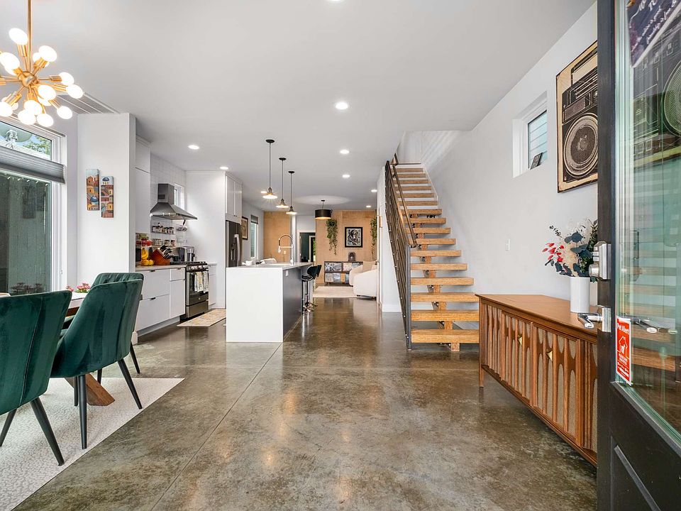 Discover contemporary luxury in East Nashville with this 3-bed, 3-bath modern single-family home. Designed with a sleek, Scandinavian-inspired aesthetic, the home features stained concrete floors on the main level and exquisite hardwoods and tile upstairs. The open-concept kitchen, dining, and living area, complete with a gas fireplace, offers a seamless flow for modern living. Two upstairs bedrooms, each with private baths, and a bonus loft space create a perfect balance of comfort and style. The upstairs Primary bed opens to a private patio with serene backyard views. A flexible room on the main level can be customized as a 3rd bedroom with a full bathroom, office, or media room, with direct access to the professionally designed and fully fenced backyard. A true oasis, beautifully hardscaped and outfitted with a pergola, lighting & more. This home is a must-see to fully appreciate. Convenient to neighborhood hot spots like Dose, Elegy, Cafe Roze, Schulman's, Ladybird Taco & more!