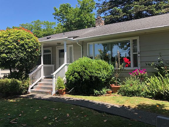Solid redwood home on .38 acre lot. Upgraded lovely home with new dual pane windows, remodeled kitchen, newer furnace and hot water heater. The large living room has a beautiful fireplace with insert. The room opens up to a cement patio and beautiful gardens. The private yard features a large cement patio with mature landscaping and fruit trees. The house sits off the street behind a large hedge for privacy. Beautiful gardens with a well built home.