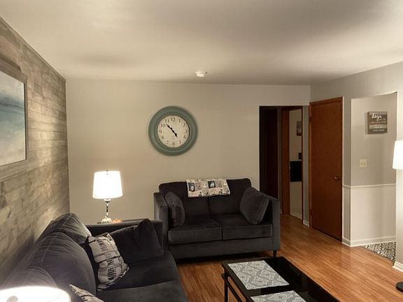 1246 Sq Ft, 4 bedroom, 1.5 bathroom Ranch. 2 car detached garage, wood floors, laminate floors and a partially fixed up basement. Forced air heat, with A C. Ship lap siding in the living room, and laminate floor down the hallway from the living room. Newer windows, and a newer water heater. All of this with kitchen appliances and a washer dryer.