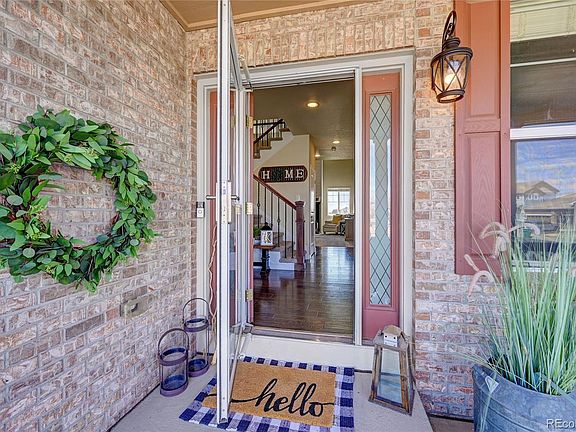 Buyers will LOVE this dream home in the Murphy Creek community. The home backs to the golf course (driving range) with NO golf balls in your yard and AMAZING Mountain views! The best-selling Richmond "James" model floorplan, with 4 bedrooms on the upper level, shows off every aspect of this home from the moment you walk in. The main level features hand-scraped hardwood floors. Beautifully updated kitchen with granite countertops, tile floor, and gas cooktop. Large family room with vaulted ceilings and new carpet. Down the hall is the quiet main floor office. Head upstairs to your huge primary suite with a custom accent wall, and an updated five-piece primary suite with granite counters, tile floor, mirrors, and lighting, not to mention more views. Across the catwalk to the other bedrooms and upstairs laundry. The other two bathrooms in the home have been tastefully updated as well. Make sure to see the backyard that features a covered patio, an additional 1000 sq ft stamped concrete patio extending along the back of the home leading to the private hot tub (included) where you can enjoy the beautiful Colorado mountain views and spectacular sunsets from the entire backyard. Fire pit pad perfect for evening entertainment. Situated across the street from a neighborhood park with extra parking right across the street, this location and home are everything you could ask for.