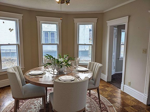 Not too big and not too small, with space for all! Main floor features living room, office, dining room, bedroom, kitchen and half bath. Upstairs features additional 3 bedrooms and full bath. The main floor office has tons of windows. The main floor bedroom has 3 closets. The kitchen has tons of cabinets. Plus you get an oversized 17' x 18' garage and a large fenced backyard. Updates include; 2021 Complete tear off, new sheeting and 35 year Architectural shingles. 2020 New 97% hi efficient furnace, new kitchen flooring, new stove. 2019 New paint, new carpet, refinish hardwood flooring, stained deck. 2008 New water and sewer lines to the street. Some furniture virtually staged. Agent Owned.