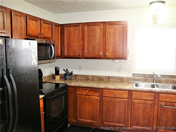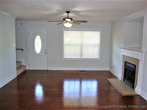 Beautiful 3 bedroom / 2.5 bathroom home with large storage building outside including shelving. Home is in a small community close to shopping, dinning and Fort Liberty. Living room with fireplace and room for dining room set. Kitchen, half bath and laundry on first floor. Upstairs the master bedroom has his/her closets and a beautiful area with bay window to relax and bathroom. 2 more bedrooms upstairs with hallway bath. Lots of closet space throughout. Great home in a cul-de-sac location. No Pets!