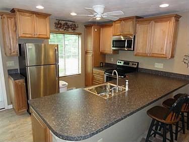 This Two-story Contemporary home features Frame and Cedar exterior, Asphalt roof, General / Common Area for 2 cars, Wall to Wall Carpet and Vinyl and Other Type floors, 1 fireplace, Electric and Baseboard heating, 3 bedrooms, 2 full bathrooms, 1 partial bathroom, Disposal, Dish Washer, Electric Stove, Microwave Oven, Multi-Pane Windows, Refrigerator, Screens, Wall to Wall Carpet.