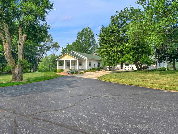 Lovely 35 acre country setting so close to town on Kokomo's near Southside w/panoramic views of 30 acres of fenced pastureland w/ meandering creek fronting on 3 roads near the recently completed walking trail & close to Jackson Morrow Park. This property features a charming hillside ranch w/over 1900 s.f. of Living space plus basement and attached 2+ car garage. 5 additional buildings are included, 4 of which have coordinating exterior siding & metal roofs. Many opportunities await you from in-home business, grazing for horses, cattle, or sheep in the pastureland or equipment storage and more. Bldg #1 60x62 quonset barn w/24x52 build-on w/2 large overhead & 2 sliding doors where horse stalls could be built. Bldg #2 48 x 120 building currently used as an active woodworking shop w/office & 2 baths. Bldg #3 64 x 48 heated & cooled building formerly used as an auto museum w/overhead door, a half bath and so much more. Bldg #4 40x38 workshop and Bldg #5 14x30 shed. The charming hillside home will greet you with a winding brick walkway to a concrete porch leading to a large Liv Rm, fully appliance kitchen w/separate eating area, pantry & garden window. Sunroom w/6 windows and adjacent Fam. Rm have vaulted ceilings. Den or former in-home office is 25x15 with outside entrance. Unfinished daylight basement offers spacious work/play area and 2nd bath. See Special Brochure. Buyer may need to obtain Special Exception Zoning for grazing animals.