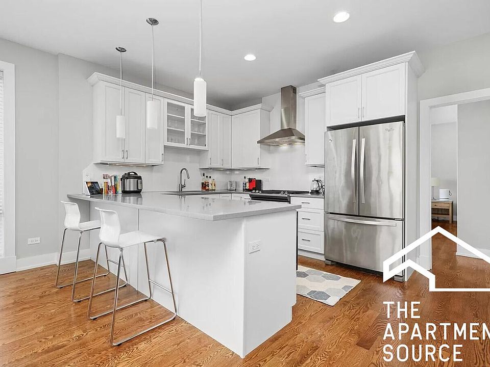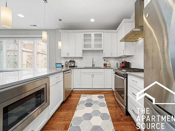 Corner unit with lots of sunlight * Massive living space - Open concept * White modern kitchen with oversized peninsula & SS appliances * In unit, large front loading, washer & dryer * King-sized master bedroom with en suite bathroom & walk-in closet * Ample closet space * Long balcony perfect for grilling and lounging * Extra storage cages available in building for rent * Complimentary bike room Renter responsible for Gas and Electric.