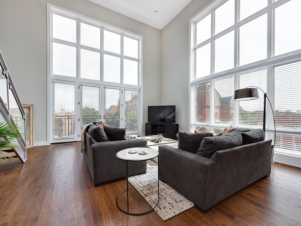 NOTHING LIKE THIS!! Sun Drenched Exquisite Penthouse Duplex with City views off a Large Private roof deck Features: 20' Ft Atrium Ceilings, Contemporary Kitchen w/Quartz Counters & Stainless Appliances, Master Suite, Hans Grohe Fixtures. Porcelain - Marco Corona Italian Tiles/ Modeli & Ryobel Mirrors/ Balconies/Garage pk avail. Elevator Building with Starbucks. Close to CTA Bus/Train.. Now Available!! Please send us a message for the link to Rexson application. Application $55 per occupant. No deposit required. Move in fee $295 per occupant Heat Garage Space $250/Mo