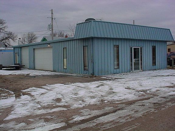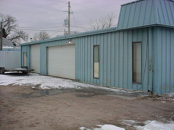 Three phase 440 power. Two overhead doors, 8 x 16 and 8 x 10. One has opener, but not remotes. Parking east of building. In process of finishing bathrooms, painting and installing tile on floors. Measurements approximate.