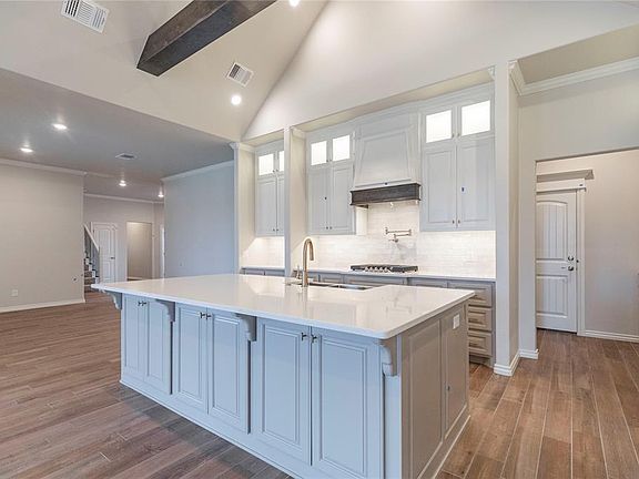 A FENCE WITH 1 GATE INCLUDED! This Lynne includes 3,425 Sqft of indoor living & 380 Sqft of outdoor living. There's also an EXTENDED 3-car garage w/ a storm shelter & additional 110 outlets installed. The 4' extension is featured on both the double & single bay. This home offers 5 bedrooms, 3 full bathrooms, a powder room, a mud/utility room, & a bonus room! The great room offers large windows w/ blinds included throughout, wood-look tile, a ceiling fan, crown molding, a stacked stone surround to the ceiling fireplace, & a cathedral ceiling w/ crows feet that extends to the kitchen. This kitchen supports 3 CM countertops, TWO pantries, stunning pendant lighting, a 5 burner range, double ovens, an upgraded 6' fridge, a pot filler, a center island that features a trash can pullout & a 110 outlet, custom-built cabinets to the ceiling w/ glass and lights in uppers as well as cabinet hardware installed throughout, & modern tile backsplash. All drawers & cabinets throughout home are soft closed, & all lower cabinets in the kitchen have been upgraded to drawers. The primary suite features a sloped ceiling detail with a ceiling fan, windows, & our cozy carpet finish. The prime bath holds a Jetta Whirlpool tub, framed mirrors w/ vanity lights, a private water closet, & a walk-in shower that features an additional shower head on a separate valve & a niche. Rocker switches are installed throughout the entire home & there are additional 110 outlets in all bedrooms that are above standard height. All secondary bedrooms feature a light & switch in their closets. Cat6 wiring is included in bedrooms 2, 4, & 5. The downstairs bath has a walk-in shower, a grab bar, a niche, & a 36" shower bench. Back patio features our back patio package, a wood-burning fireplace, a gas line, a TV hookup, two patio fans w/ switch, two waterproof plugs, & a patio extension that expands behind the utility room & prime bath. 7 Additional puck lights have been added as well as cedar to the front entry.