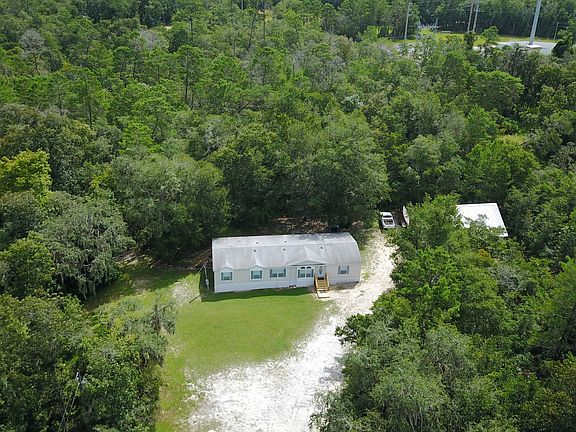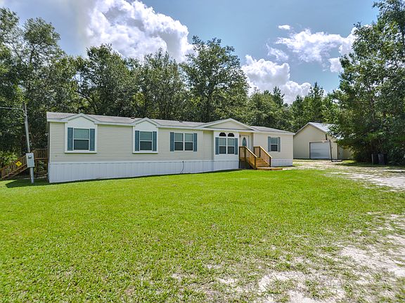 5 acres of country living. Close to Withlacoochee State Park and riding trails. Within horse riding distance to Hernando county lake Townsend regional Equestrian trails. Bring your 4-legged friends! This home has been very well maintained. Inside is a very open spacious floor plan with over 2,000 sqft. Crown molding trims the soaring vaulted ceilings. Laminate wood flooring coats the living areas and bedrooms for easy maintenance. A decorative pillar entry to the chef's kitchen. Extra counter space and a breakfast nook area for a quick bite. Tile flooring in the kitchen along with a center island and plenty of cabinet space. His and Hers vanities with loads of counterspace, a garden bath for relaxing, two walk-in closets and a walk-in shower. 3 car detached garage for extra space!